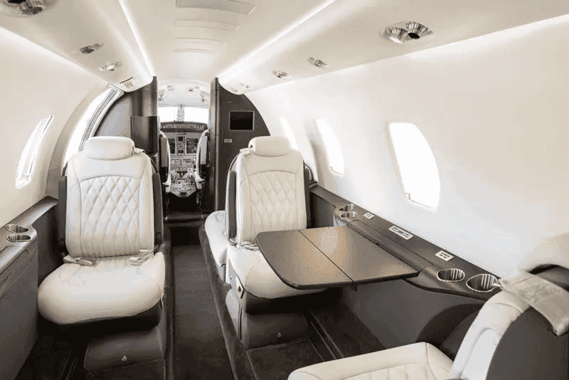 Citation XLS/Excel aircraft can fly in and out of smaller airports while offering ample room for up to 7 passengers. This private jet is purpose-built for conducting business on board and includes pull-out executive tables and Wi-Fi.